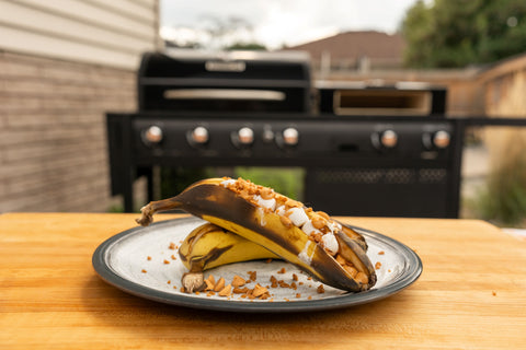 Grilled Bananas with Marshmallows, Skor Bits & Butterscotch Chips